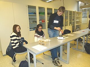 Steffen Fohler untersuchte mit den jungen Europäern im Chemielabor wie Natriumacetat als Energiespeicher genutzt werden kann. Unmengen an Energie werden tagtäglich vergeudet, weil sie nicht gespeichert werden. Ziel der Chemiker ist es, Wärme zu speichern, wenn sie im Überfluss vorhanden ist und diese bei Bedarf wieder in Energie umzusetzen.