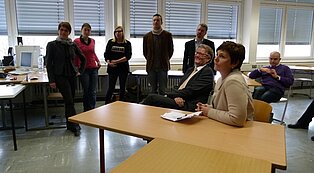 Die Präsidentin der Abteilung Schule und Bildung im Regierungspräsidium Tübingen, Frau Dr. Susanne Pacher, besuchte am Dienstag, den 18.02. die Bertha-Benz-Schule. Als Abteilungspräsidentin betreut sie im Regierungspräsidium fast 1000 Schulen mit ca. 245.000 Schülern und knapp 24.000 Lehrern. Seit der Schulfusion im Schuljahr 2012/13 gehört die Bertha-Benz-Schule zu den sehr großen Schulen des RP Tübingen. Dies war für Frau Dr. Pacher Anlass genug sich über das Schulleben im breiten Bildungsspektrum der BBS zu informieren. Bei ihrem Rundgang erhielt sie viele Einblicke in Projekte, Lernortkooperationen, eine schulische Kooperation mit der Förderschule in Sigmaringen sowie über einen aktuellen Schulversuch.