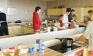 In der Küche gab es vielerlei herzustellen: Hackfleisch- und Kräuterschnecken, Pizzabrötchen, Hackfleischspießchen, Nudel- und Reissalat und zum Dessert Hawaii-Quark und Rote Grütze.