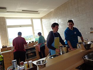 Unter Anleitung von Eva Grosshans und Margaretha Kleiser wurden im Laufe des Vormittags jeweils ein veganes und ein ovo-lacto-vegetarisches Vier-Gänge-Menü zubereitet.