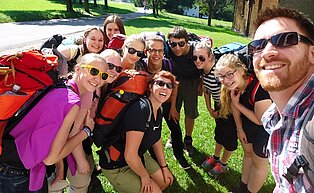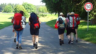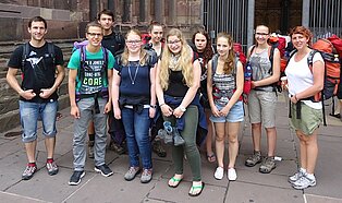 Neun Schülerinnen und Schüler der Eingangsklasse 11 des sozialwissenschaftlichen und ernährungswissenschaftlichen Gymnasiums und ihre Lehrer pilgerten im Rahmen der diesjährigen Tage der Orientierung (Fachschaft Kath. Religion) vom 17. bis 20. Juli 2014 entlang des Himmelreich-Jakobswegs.