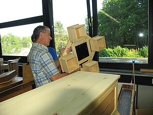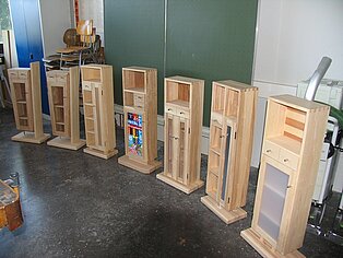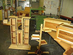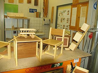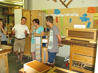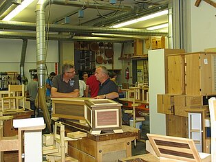 In den Werkstätten der Holzabteilung stellten die angehenden Schreiner der Bertha-Benz-Schule die Werkstücke aus, die sie im Laufe des Schuljahres zur Abschlussprüfung der Einjährigen Berufsfachschule hergestellt haben. Ausbilder der Betriebe und die Eltern hatten die Gelegenheit die Produkte, die vom CD-Ständer bis zum Serviertablett reichten, anzuschauen und sich in Gesprächen mit den Fachlehrern über den Leistungsstand der Schüler zu informieren.