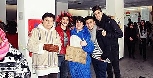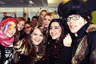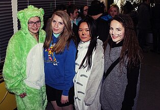 Viel Leben im Haus war in der Bertha-Benz-Schule am diesjährigen Auseliga. Während des närrischen Zusammenseins von Schülern und Lehrern bei der gemeinsamen Fasnetsfeier mit Punsch und Kaffee, Kuchen und Brezeln wurde erwartungsvoll auf das Kommen des Narrenvereins gewartet... Bleibt nur die Frage, wer den Pokal für das beste Kostüm des Tages bekam - Schüler oder Lehrer?