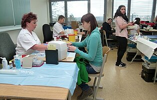 Knapp 100 Schüler haben am Donnerstag, den 5. März an der Bertha-Benz-Schule Blut gespendet. Die Aktion, die jährlich von der SMV in Zusammenarbeit mit dem DRK organisiert wird, war damit wieder ein voller Erfolg, der gekrönt wurde durch die hohe Anzahl von Erstspendern. 70 Schüler trauten sich in diesem Jahr zu ihrer ersten Blutspende.