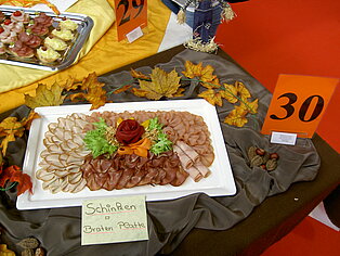 Die Fachverkäuferinnen nahmen am internationalen Berufsschulwettbewerb teil. Dabei liegt die Herausforderung in der Gestaltung von Platten mit küchenfertigen Produkten oder Grillartikeln und Canapees oder Schinkenplatten. Die besondere Präsentation gehörte selbstverständlich dazu. Zudem wurde Teamarbeit groß geschrieben. Jeweils zwei Verkäuferinnen wurden gemeinsam bewertet.
