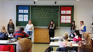 Als nächstes galt es die Fragestellungen unter Berücksichtigung der Kriterien wissenschaftlichen Vorgehens (Validität, Reliabilität, Objektivität) zu bearbeiten, um als Gruppe eine Ministudie zu der dargestellten Fragestellung durchzuführen. Die Gruppen mussten aber nicht nur an dieser empirischen Front gegen das Mediendschungelimperium kämpfen, nein, sie mussten auch die Schlagkraft verschiedener Medienwirkungstheorien überprüfen und beurteilen. Abschließend wurde die erkämpfte Lichtung in Form einer begründeter Stellungnahme und einer Präsentation gesichert.