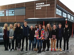 Nachdem die Bertha-Benz-Schule von Schülerinnen und Schülern der Vidaregaande Skule (Stranda/Norwegen) bereits im letzten Dezember als Fortführung des im letzten Juli beendeten Comenius-Projekts besucht wurde, machten sich am Mittwoch, den 11.02.2015 sieben Schülerinnen und Schüler der Bertha-Benz-Schule zusammen mit ihren Lehrerinnen Heike Friedrich und Julia Gerteis nach Stranda auf. Sie besuchten dort ihre norwegischen Freunde, lernten das norwegische Schulsystem und die norwegische Lebensweise besser kennen und konnten den deutsch-norwegischen Kontakt verstärken.