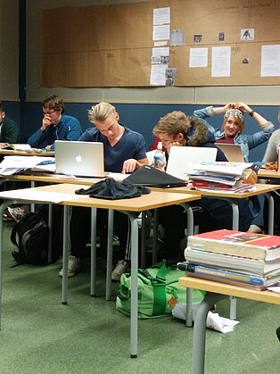 Nach einer langen Fahrt durch die traumhaft schöne Landschaft mit ihren zahlreichen Fjorden und Bergen wurde die Gruppe sehr herzlich und offen von ihren norwegischen Freunden und Lehrkräften in Stranda begrüßt. Schnell machten sie Bekanntschaft mit dem norwegischen Unterricht, der sich deutlich von dem deutschen unterscheidet. So ist der norwegische Unterricht sehr digital aufbereitet. Jeder Schüler arbeitet mit einem eigenen Laptop, anstatt mit einem Arbeitsheft bzw. Ordner. Des Weiteren finden die Schülerfeedbacks vorwiegend online statt.
