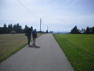 Der erste Tag, Donnerstag, startete nach der Zugfahrt nach Villingen sehr motiviert und guter Dinge. Das Wetter war gut, wenn auch schon fast zu warm. Wir liefen 22 km. Die ersten Stunden waren gut auszuhalten. Jedoch waren die letzten fünf Kilometer für alle schwer und mühsam. Alle waren wir froh, als wir endlich an unserer ersten Station in Vöhrenbach ankamen. Nachdem alle geduscht hatten, wurde gemeinsam gekocht. Anschließend wurde draußen gegessen und der Abend verlief ruhig, da jeder von dem ersten anstrengenden Tag geschafft war.