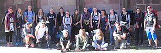 19 Schülerinnen und Schüler der Eingangsklassen und drei Lehrer der Bertha-Benz-Schule pilgerten auf dem Jakobsweg von Villingen nach Freiburg. Insgesamt wanderten wir 68 km über Feldwege, Wiesen und durch Wälder.