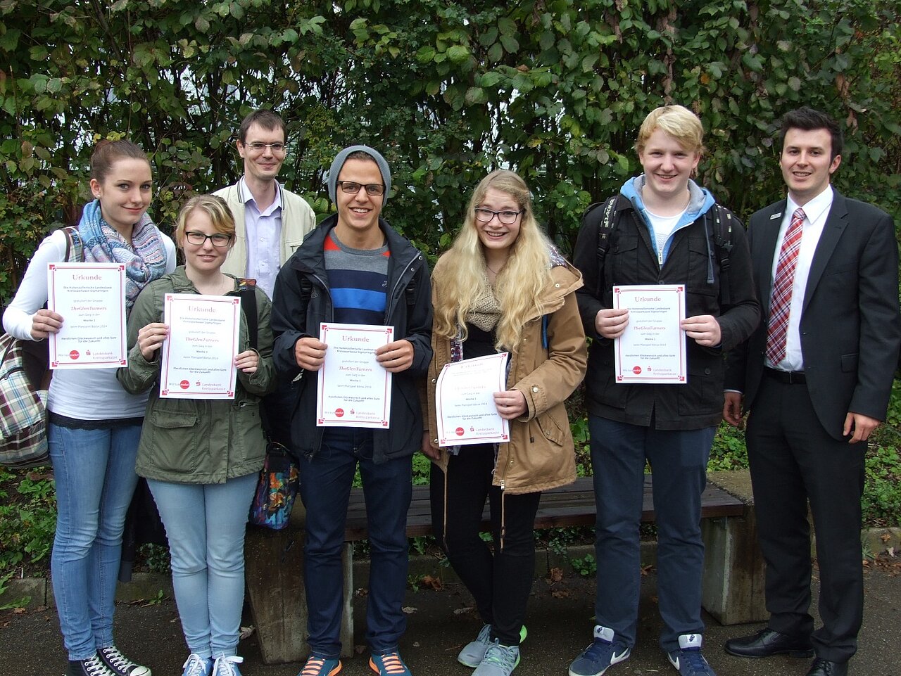 Endlich ist es wieder soweit. Seit dem 1. Oktober können sich die Schüler am Planspiel Börse beteiligen. Der Start verlief für die Bertha-Benz-Schule sehr erfolgreich. So konnte sich die Gruppe „TheGlenTurners“ aus der Jahrgangsstufe 1 als 1. Wochensieger behaupten. Die Gruppenmitglieder Maximilian Maier, Sandrina Mäske, Svenja Rösch, Christoph Schöning und Hanna Stauß verzeichneten in der ersten Woche einen Zuwachs von 0,36% und konnten damit den Turbulenzen am Aktienmarkt ein Schnippchen schlagen. Ihre Leistung wurde von der Kreissparkasse Sigmaringen mit Urkunden und McDonald´s Gutscheinen belohnt. Wollen wir hoffen, dass sie diese Leistung nochmals wiederholen können und vielleicht auch am Ende einen der vorderen Plätze belegen.