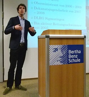 Das Abitur in der Tasche, alle Möglichkeiten vor sich – der Traum vieler Schüler. Wenn es aber schließlich soweit ist, steht man vor der großen Herausforderung die richtige Wahl für die berufliche Zukunft zu treffen. Um Schülern bei dieser Entscheidung Orientierung zu geben, hat der Förderverein der Bertha-Benz-Schule fünf junge Leute eingeladen, die am Technischen und Ernährungswissenschaftlichen Gymnasium ihr Abitur gemacht haben. Sie berichteten über ihr Studium und über ihren beruflichen Werdegang.
