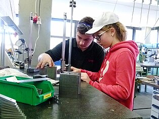 Abteilungsleiter Ottmar Frick begrüßte die Gäste und stellte ihnen die Schule vor. Als „Paten“ standen Schülerinnen und Schüler den Berufserkundern mit Rat und Tat zur Seite. Nach einer kurzen Einweisung in die Arbeitsweise des jeweiligen Berufes produzierten die Mädchen mit Unterstützung ihrer „Paten“ selbst ein Werkstück, das sie anschließend mit nach Hause nehmen durften.