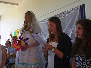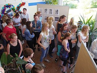 Die Auszubildenden der Fachschule für Sozialpädagogik haben sich am Ende ihrer schulischen Ausbildung zur Erzieherin in diesem Jahr mit dem Thema „Wiederverwertung“ künstlerisch auseinandergesetzt. Unter Anleitung ihrer Lehrerin Christine Majer und der Künstlerin Amy Ciesla gestalteten die Auszubildenden in Gruppen eigene Interpretationen zum Thema und präsentierten diese im Rahmen einer Vernissage, die an der Fachschule für Sozialpädagogik stattfand.