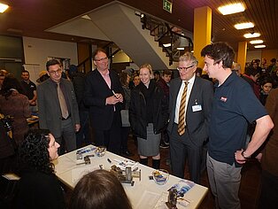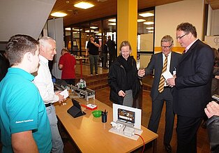 Der Schulleiter freute sich gemeinsam mit Landrätin Stefanie Bürkle und Hans Börjes, zuständig für die Wirtschaftsförderung der Stadt, mehr als 40 Aussteller auf dem Marktplatz begrüßen zu dürfen. Die Landrätin zeigte sich beeindruckt vom Informationsangebot: „Es ist toll, dass die Jugendlichen hier die Möglichkeit haben, die Vielfalt der Betriebe mit ihren Ausbildungswegen kennen zu lernen und direkt mit Lehrlingen ins Gespräch zu kommen.“