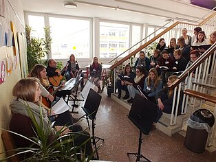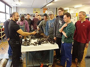 Beim Rundgang durch die verschiedenen Gebäude zeigte sich den Besuchern die ganze Vielfalt der Bertha-Benz-Schule, die sich auch immer wieder in besonderen Klängen und Gerüchen offenbarte. Während bei den Sozialpädagogen Gitarrenmusik und Gesang zum Verweilen einlud, waren es in den Werkstätten die Gerüche von Metall und Holz, der Sound der CNC-Fräsmaschine und nicht zuletzt der verlockende Duft aus der Backstube, die Inhalte der verschiedenen Bildungsangebote aufzeigten.