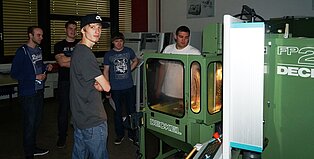 In einer sechswöchigen Projektphase hatten die angehenden Zerspanungsmechaniker der M3ZS von der Planung bis zur Fertigung die einzelnen Schritte bei der Produktion einer Getriebegrundplatte erarbeitet, angefangen bei der Zeichnungserstellung mittels CAD, über die Auswahl der Werk- und Schneidstoffe, der Wärmebehandlung und deren Prüfung bis hin zum CNC-Fräsen und natürlich der Qualitätsprüfung des fertigen Werkstückes. In Vorträgen vermittelten die Schüler Einblicke in dieses aufwändige Produktionsverfahren und stellten dabei ihre Fachkenntnisse unter Beweis.