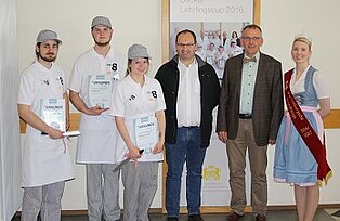 Die jungen Bäcker hatten die Aufgabe, Dinnete, Seelen, Hefezöpfe und Nikoläuse im Holzbackofen zu backen. Mit ausgefallenen Formen und Mustern zeigten die Lehrlinge ihre Kreativität und versuchten die dreiköpfige Jury aus Lehrern der verschiedenen Innungen zu überzeugen. Die drei Bäcker der Bertha-Benz-Schule konnten zwar keinen der ersten drei Plätze belegen, aber dennoch stolz auf ihre Leistungen sein und die Gratulation von Europas bester Jungbäckerin Tanja Angstenberger, Schulleiter Christian Roth und Fachlehrer Günter Lutz entgegennehmen.