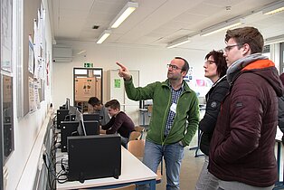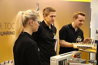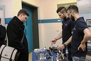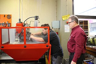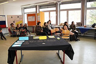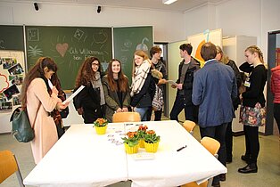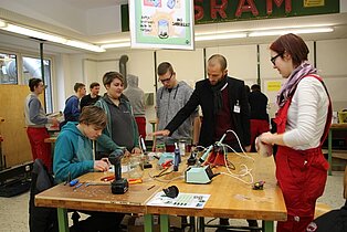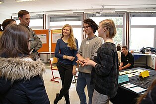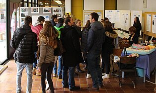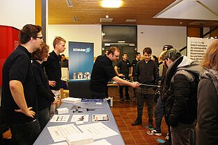 In der Bertha-Benz-Schule nutzten viele Jugendliche der Region die Gelegenheit, sich beim Marktplatz und beim Infotag über die Vielfalt der Bildungsangebote zu informieren. Diese reichen von den gewerblichen Ausbildungsberufen über die Möglichkeit im VAB, in den Berufsfachschulen und im Beruflichen Gymnasium mit seinen fünf verschiedenen Profilen einen höheren Schulabschluss zu erreichen bis hin zur Ausbildung als Erzieherin in der Fachschule für Sozialpädagogik. Beim Marktplatz mit mehr als 40 Ausstellern kamen die Jugendlichen direkt mit Lehrlingen ins Gespräch, die engagiert für ihre Berufe Werbung machten. Ronja Aichele, die im ersten Ausbildungsjahr ist, hatte sich vorgenommen, vor allem auch Mädchen für ihren Beruf als Industriemechanikerin zu begeistern. „ Es ist ein toller Beruf und als Mädchen hat man hervorragende Aufstiegschancen.“, berichtete sie. Neben den Infos an den Marktständen konnten die Gäste in den Werkstätten Schülern bei der Arbeit zuschauen und Eindrücke über die praktischen Inhalte der Ausbildung sammeln. In den Vollzeitschulen und in der Fachschule für Sozialpädagogik informierten Schüler und Lehrer in Vorträgen und bei Beratungsgesprächen sowie mit vielen Infotafeln. Im Beruflichen Gymnasium waren die Jugendlichen und ihre Eltern vor allem an speziellen Informationen über die jeweiligen Profile interessiert, um nach der Mittleren Reife den richtigen Weg einschlagen zu können. Wer sich bei der Vielfalt der Eindrücke einfach mal ausruhen wollte, der war in der Fachschule für Sozialpädagogik genau richtig, wo die Schülerinnen gemeinsam mit Musiklehrer Thomas Ciesla mit tollen Liedern zum Verweilen einluden.