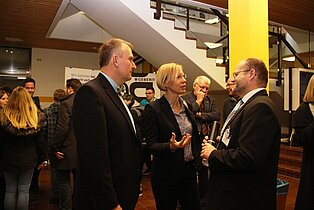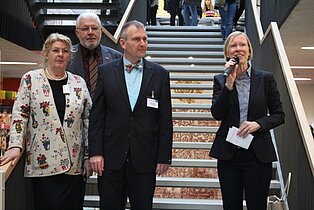 „Die Berufswahl ist wichtig“, betonte Landrätin Stefanie Bürkle bei der Eröffnung des Informationstags der beiden Sigmaringer Beruflichen Schulen Bertha-Benz-Schule und Ludwig-Erhard-Schule. Diese fand in diesem Jahr im Foyer der Ludwig-Erhard-Schule statt. Beide Schulen stellten an ihrem InfoTag nicht nur ihre Schulprofile vor, sondern es gab gleichzeitig einen „Marktplatz der Möglichkeiten“, den zahlreiche Firmen und Institutionen nutzen, um über ihre Ausbildungsangebote zu informieren. Dies wurde von der Handwerkskammer, der Industrie- und Handelskammer sowie der Agentur für Arbeit mitgetragen. Daher waren bei der Eröffnung auch deren Vertreter anwesend: Kreishandwerksmeister Sigmund Bauknecht, Markus Brunnbauer (IHK) und Herr Klink (BfA). Ebenso nahmen der Sigmaringer Bürgermeister Thomas Scherer sowie die Schulleiter der beiden Schulen, Michaela Breu und Christian Roth, an der Eröffnung teil. Die Landrätin wies auf den hohen Stellenwert der Beruflichen Schulen hin, da sie 4000 Schülerinnen und Schüler betreuen, von denen 1700 im dualen Schulwesen ausgebildet werden. Kreisweit, gab sie bekannt, existierten ca. 150 verschiedene Ausbildungsgänge. Deshalb waren viele Unternehmen auf dem „Marktplatz der Möglichkeiten“ mit einigen Auszubildenden vertreten, die über ihre Ausbildung befragt werden konnten. Zugleich betonte die Landrätin die Offenheit des Bildungssystems, der es zu verdanken ist, dass je nach Fähigkeit und Neigung jeder Bildungsabschluss über das Berufliche Schulwesen erreicht werden kann.