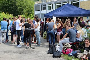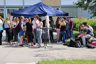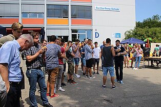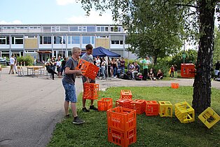 Bei bestem Wetter feierten die Schülerinnen und Schüler der Bertha-Benz-Schule gemeinsam mit ihren Lehrern das von der SMV organisierte Sommerfest. Grillwürste, Waffeln und alkoholfreie Cocktails sorgten für gute Laune. Nicht fehlen durfte natürlich das traditionelle Kistenstapeln.