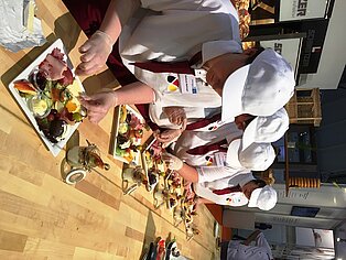 Die Verkäuferinnen bekamen die Aufgabe unter dem Motto „Frühstück in der Bäckerei“ einen Frühstücksteller dekorativ zu belegen. Gemeinsam mit ihrer Lehrerin Daniela Lindner meisterten die fünf Auszubildenden die Aufgabe mit Bravour und konnten durch ihre Kreativität und ihr handwerkliches Geschick der kritischen Jury zeigen, was in ihnen steckt und sie begeistern.
