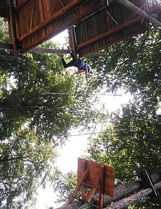Insgesamt standen drei unterschiedliche Aktivitäten in ca. 8 m Höhe zur Auswahl. Nachdem mutige Schülerinnen den ersten Durchgang veranschaulichten und die Sicherung am Boden geklärt war, trauten sich mehr und mehr in die Höhe. Zur Auswahl stand ein ca. 5 m langer Balken, auf dem balanciert werden musste, ein Tarzansprung, bei dem man sich über zwei frei hängende Seile zu einem Baum schwingen musste, und wackelige, frei schwebende Holzbretter, die auf einer Länge von ca. 10 m überwunden werden mussten. Einige wuchsen dabei über sich selbst hinaus und das Adrenalin und eine Euphorie breitete sich innerhalb der gesamten Gruppe aus. Nicht nur die Lehrer waren begeistert vom Mut und dem Zusammenhalt der Gruppe, sondern auch die Trainer schlossen den Tag mit einem großen Lob ab.
