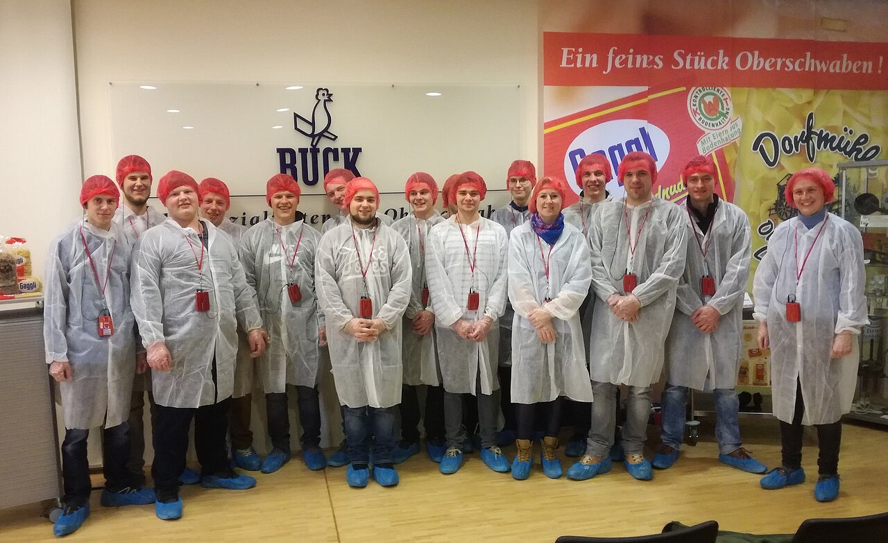 Zum Abschluss des Themas „Getreidebau“ waren die Schüler der L2LW zu Besuch bei Gaggli in Ennetach, Mengen. Neben den vier Produktionslinien für Nudeln war für die angehenden Landwirte die Eieraufschlagmaschine besonders interessant, sowie die Erläuterungen zum Einkauf der Rohstoffe. Beispielsweise werden alle 40 000 Eier, die täglich verbraucht werden, ausschließlich von KAT-Betrieben (KAT – Verein für kontrollierte alternative Tierhaltungsformen) bezogen. Beim Blick hinter die Kulissen wurden sowohl das Hygienemanagement wie auch die kundengruppenorientierte Produktpalette von Spätzle, über glutenfreie Kindernudeln bis hin zu Spaghetti als tragende Säulen dieses Traditionsunternehmens vor unserer Haustür vor Augen geführt.