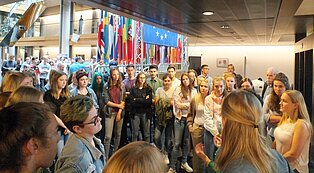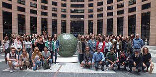 Rechtzeitig zur Abstimmung am 5. Juli machte sich die Jahrgangsstufe 1 des Sozialwissenschaftlichen Gymnasiums der Bertha-Benz-Schule auf den Weg nach Straßburg in das Europäische Parlament.