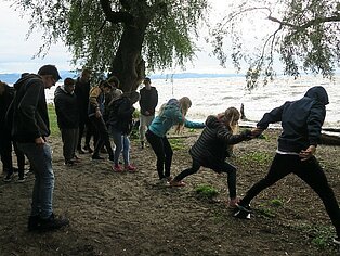 Nach einer gemütlichen Zugfahrt und einem stärkenden Mittagessen im Don-Bosco-Haus ging es los mit einer Wanderung durch das Eriskircher Ried, das größte Naturschutzgebiet am nördlichen Ufer des Bodensees. Bei verschiedenen Kennenlernspielen haben die Schüler dabei gelernt im Team zu arbeiten, Vertrauen zueinander zu entwickeln und strategisch gemeinsam Ziele zu erreichen. Nach Tischtennisspielen, Badminton und Feuermachen zurück im Don-Bosco-Haus belohnten sie sich am Abend mit einem leckeren Grillen rund ums Lagerfeuer und einem anschließenden gemütlichen Beisammensein mit Spielen und Getränken im Keller des Hauses.