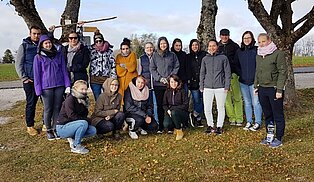 Doch genug mit der Theorie und rein in die Praxis. Was passiert, wenn man mit acht Mädels und drei Jungs durch den Wald marschiert, eine Hütte betritt, in der weder eine Dusche, noch eine "normale" Toilette ist? Richtig, man nimmt das erstmal so hin und versucht das Beste draus zu machen. Punkt eins auf der Tagesordnung war die Einteilung der einzelnen Dienste, ein leidiges Thema... Aber siehe da, kein Problem für den bunten Haufen. Läuft, könnte man da sagen. Ein Blick auf die Uhr und immer wieder das Knurren des Magens, Zeit zu essen. Erste Teambuilding-Maßnahme für die Gruppe, kochen damit jeder satt und zufrieden ist. Ein wahrer Genuss, was die Mädels da gezaubert haben. Beim Essen konnte sich die Gruppe näher kennenlernen und erste Kontakte knüpfen.