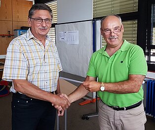 Nach seinem Rücktritt als Vorsitzender im Jahr 2002 war Dietmar Lehmann als Beisitzer und immer gefragter Ratgeber weiterhin aktiv und blieb dem Förderverein auch nach seinem Austritt aus dem Schuldienst treu. Der Vorsitzende Urban Eschbach bedankte sich für diese ausdauernde und intensive Arbeit für den Verein und damit für Schüler und Lehrer der Gewerblichen Schule und der Bertha-Benz-Schule.