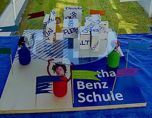 13 Klassen der Bertha-Benz-Schule haben am diesjährigen Leitbildwettbewerb teilgenommen. Gespannt erwarteten sie am Mittwoch, den 11. Juli die Ergebnisse der Jury bestehend aus Mitgliedern der SMV, Sekretärinnen, Reinigungskräften, Hausmeistern, Lehrkräften und der Schulleitung, die die Exponate bewertet hatte.