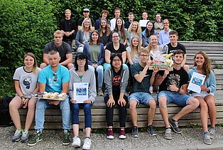 Julia Gerteis übernahm die Preisverleihung und freute sich wie der Schulleiter besonders über die Vielfalt der Teilnehmer, die sich auch bei der Vergabe der Preise zeigte, denn die drei ersten Plätze belegten Klassen aus drei unterschiedlichen Schularten. Der dritte Preis ging an die Eingangsklasse EG, die einen Obstkorb für ihr Exponat erhielt. Den zweiten Platz belegten die Schülerinnen und Schüler des VAB KF2, die sich über in der Schulbäckerei gebackene Muffins freuen konnten. Mit ihrem handwerklichen Geschick hatten die angehenden Tischler der 1BFZ die Jury überzeugt und erreichten den ersten Platz beim Wettbewerb. Auf die Klasse wartet ein Frühstück, zubereitet von Daniela Lindner und ihren Schülern.