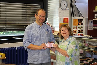 Angehende Bäcker und Bäckereifachverkäuferinnen der Bertha-Benz Schule konnten durch eine zweite Verkaufsaktion in diesem Schuljahr erneut einen stolzen Betrag von 500 € einnehmen und die Spende der Angelo-Stiftung überreichen. Unter dem Motto „Schenke mit Herz“ verkauften die Schüler selbst hergestellte Backwaren wie Quarkteigherzen in den Klassen. Die Bäcker des zweiten und dritten Lehrjahres haben außerdem selbstgemachte Maultaschen mit Kartoffelsalat gekocht und bei einem Mittagessen in der Bertha-Benz-Schule serviert.