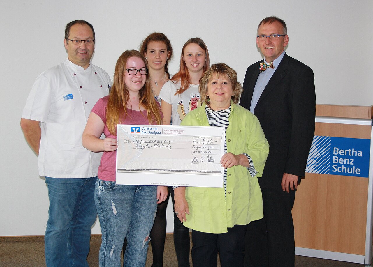 Schülerinnen und Schüler der Bertha-Benz Schule haben durch eine Verkaufsaktion an der Schule der Angelo-Stiftung den stolzen Betrag von 530 Euro überreicht. Die Stiftung unterstützt Kinder mit einer Krebserkrankung oder Kinder, deren Eltern an Krebs erkrankt sind, finanziell und sozial. An der Aktion waren die Bäcker, Bäckereifachverkäuferinnen sowie die Hauswirtschaftsschüler der ersten Klassen beteiligt. Unter dem Motto „Schenke mit Herz“ hatten die Schüler die von den angehenden Bäckern selbst hergestellten Backwaren wie Quartteigherzen, Nusshörnchen und Quarktaschen in den Klassen der Schule verkauft.