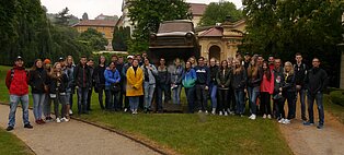 Davon, dass Prag eine der schönsten europäischen Metropolen ist, konnten sich dieses Jahr die Schüler der Klassen SG2 und TM der Jahrgangsstufe 1 überzeugen. Der erste Höhepunkt der Reise war der Besuch der Prager Burg, die zeitgleich der Regierungssitz des tschechischen Präsidenten ist. Zur Sicherheit des Staatsoberhauptes ist hier eine Wache stationiert, deren schicke Uniformen man bestaunen kann, wenn der stündliche Wachwechsel von den mit Bajonetten ausgestatteten Soldaten vollzogen wird. Dass die Sache neben dem Kostümevent auch einen ernsten Aspekt verfolgt, wird klar, wenn man die Sicherheitsschleusen passieren muss und die zusätzlichen modern bewaffneten Soldaten in der Burganlage sieht. Neben dem gotischen Veitsdom, in dem auch dem heiligen Nepomuk gedacht wird, kann man in der Burg das goldene Gässchen und auch eines der Fenster bestaunen, das für einen der berühmten Pragerfensterstürze geöffnet wurde. Besonders beeindruckt waren die Schüler am zweiten Tag vom Jan Palach-Denkmal. Dort gedenkt man eines Studenten, der sich aus Protest gegen die politischen Zustände nach dem Prager Frühling an dieser Stelle 1969 selbst verbrannt hat.
