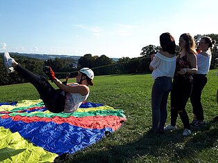 21 angehende Erzieherinnen und drei Erzieher der Klasse 1BKSP2 lernten sich beim Anfangsseminar in Biberach kennen. Bei verschiedenen Aufgaben mussten sie an die eigenen Grenzen gehen und als Team zusammenarbeiten, beispielsweise bei der Überwindung eines „Säureteichs“.