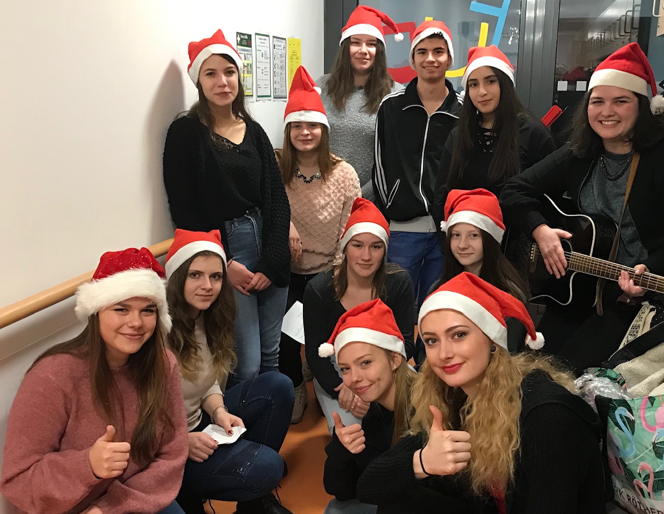 Ausgestattet mit Weihnachtsmützen sangen die Schüler Weihnachtslieder, wobei die Lehrerin Angela Schönebeck sie mit der Gitarre musikalische begleitete. Für die Schüler war der Kontakt mit den Menschen mit Behinderung eine tolle Erfahrung. Es machte ihnen viel Spaß und offensichtlich auch den Bewohnern, von denen einige in den weihnachtlichen Gesang einstimmten.