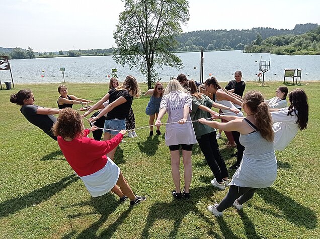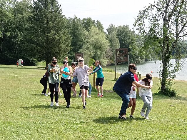 Nach gemeinsamem Picknick, das Gelegenheit bot, die erste Ausbildungshälfte Revue passieren zu lassen, wurden unterschiedliche erlebnispädagogische Spiele gespielt. Bei verschiedenen Kommunikations- und Kooperationsübungen stand die Stärkung der Klassengemeinschaft und Teamfähigkeit im Vordergrund, wobei der Spaß nicht zu kurz kam!