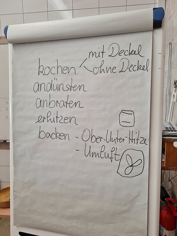 Neben der Praxis gab es auch theoretische Einheiten, in denen Begriffe wie "andünsten", "erhitzen", "anbraten", "backen", "Oberhitze" und "Unterhitze" erklärt wurden. Für viele Teilnehmer war es das erste Mal, dass sie solche Begriffe hörten und praktisch anwenden konnten.