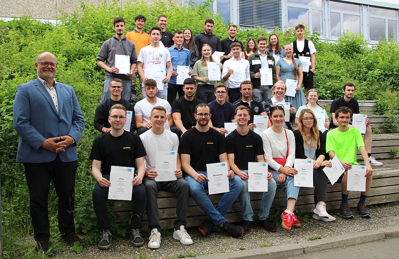 Schulleiter Ottmar Frick verabschiedete die Absolvent*innen gemeinsam mit den Lehrkräften und Vertretern der Ausbildungsbetriebe. Die jungen Erwachsenen hätten mit dem Abschluss ihrer dualen Berufsausbildung ein bedeutendes Kapitel in ihrem Leben abgeschlossen und damit ein Fundament für ihre zukünftige berufliche und persönliche Entwicklung geschaffen. Sie hätten gelernt, Herausforderungen zu meistern, Probleme zu lösen und sich kontinuierlich weiterzuentwickeln. Diese Eigenschaften seien in der heutigen schnelllebigen und sich ständig verändernden Welt von unschätzbarem Wert.