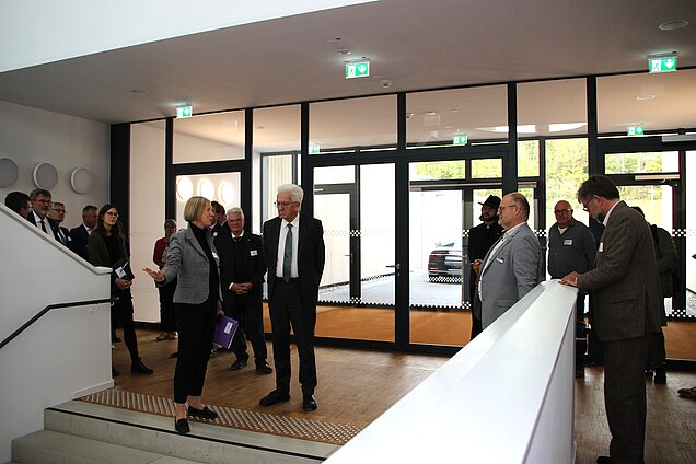 Auf seiner Tour durch den Landkreis Sigmaringen hat Ministerpräsident Winfried Kretschmann die Bertha-Benz Schule besucht. Schulleiter Ottmar Frick führte den Regierungschef durch das neue Gebäude mit seinen modernen Unterrichtsräumen.