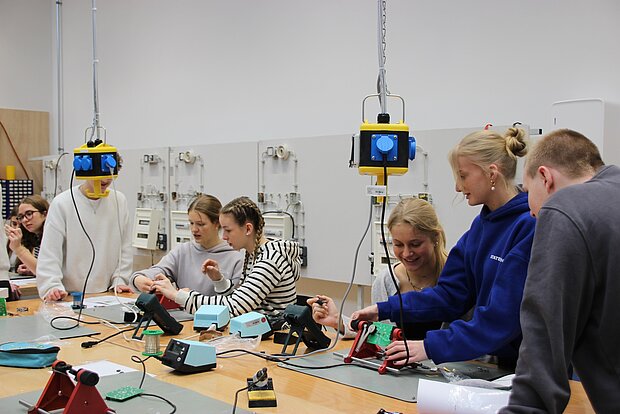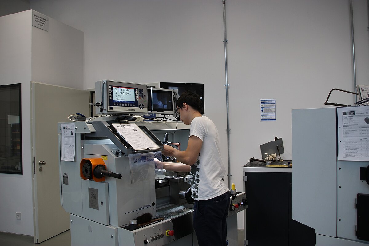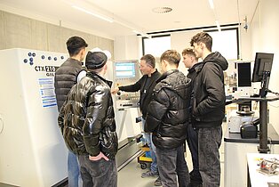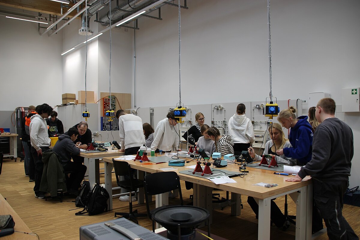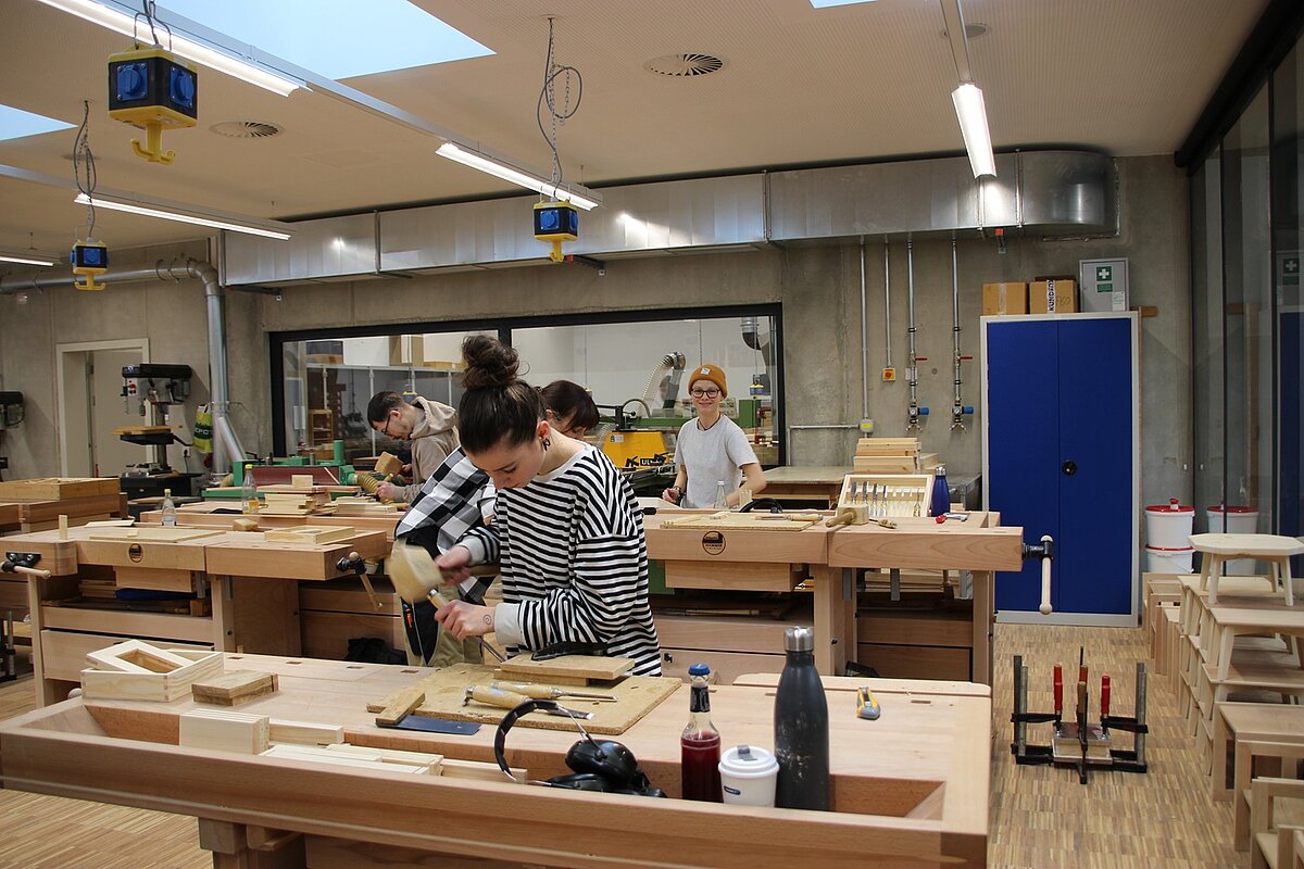 Einblicke in die praktische Arbeit der verschiedenen Ausbildungsberufe gab es bei einem Rundgang durch die Werkstätten der Schule, wo Auszubildende und Schüler*innen der Berufsfachschulen im Einsatz waren.