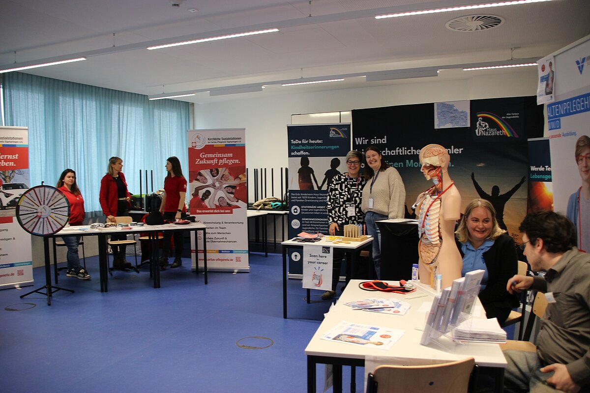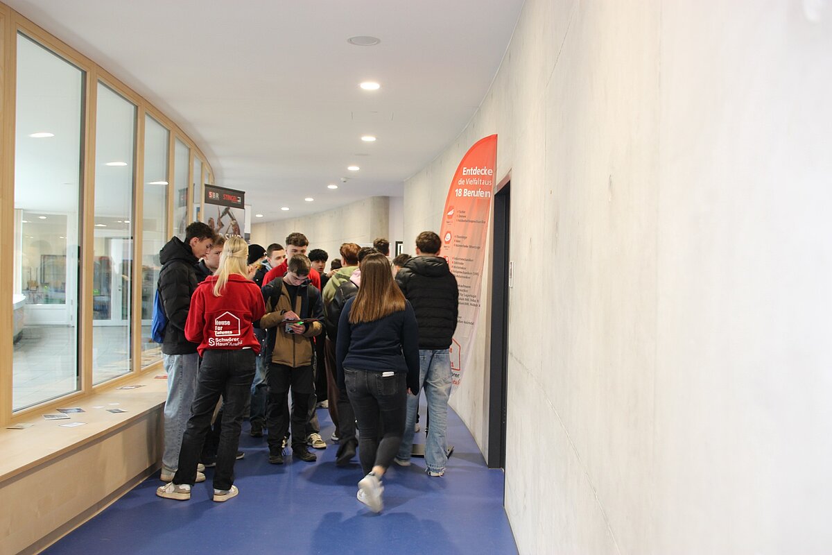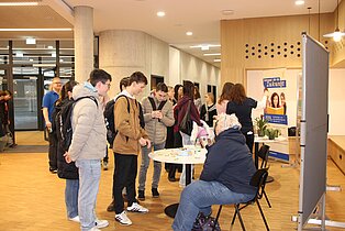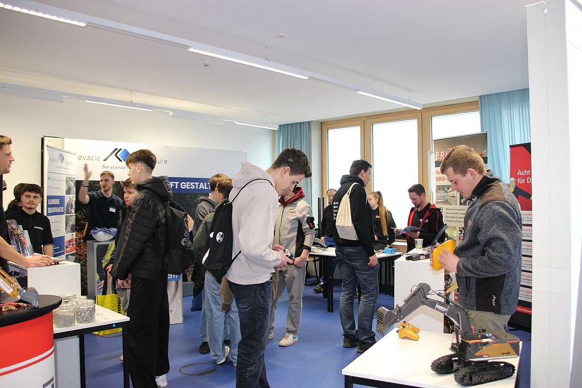 Erstmals im Neubau präsentierte sich die Bertha-Benz-Schule beim Informationstag und Marktplatz für Ausbildung am 5. und 6. Februar mit ihrem vielfältigen Bildungsangebot. Bereits am Donnerstagabend hatten Jugendliche der Region die Möglichkeit sich gemeinsam mit ihren Eltern zu informieren. Am Freitagmorgen fanden zahlreiche Schulklassen des Landkreises mit ihren Lehrer*innen den Weg in die neue Schule.