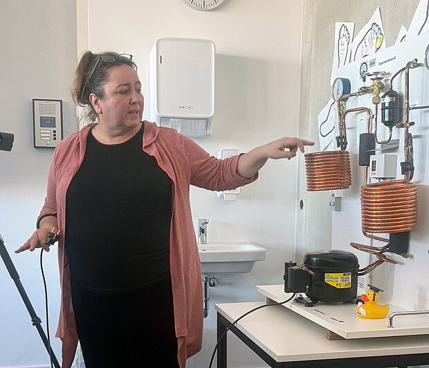 Prof. Reg.-Bm. Lorenz Bock und Elke Konday besuchen das Wahlfach "Sondergebiete der Technik"