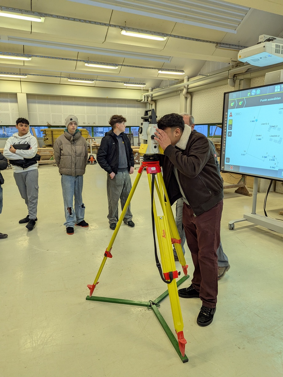 Bei einer kurzweiligen Führung mit Herrn Winfried Rombach erhielten die Schüler Einblick in Themenbereiche wie das Erstellen von Schalungen und Pflasterflächen, sowie das Einmessen von Punkten mit einem Tachymeter. Hierbei durften sie immer wieder selbst tätig werden. Im Anschluss erläuterte Herr Michael Lehner die Ausbildungsmöglichkeiten im Bereich Bau. Wir bedanken uns bei allen Beteiligten für den informativen und abwechslungsreichen Vormittag.