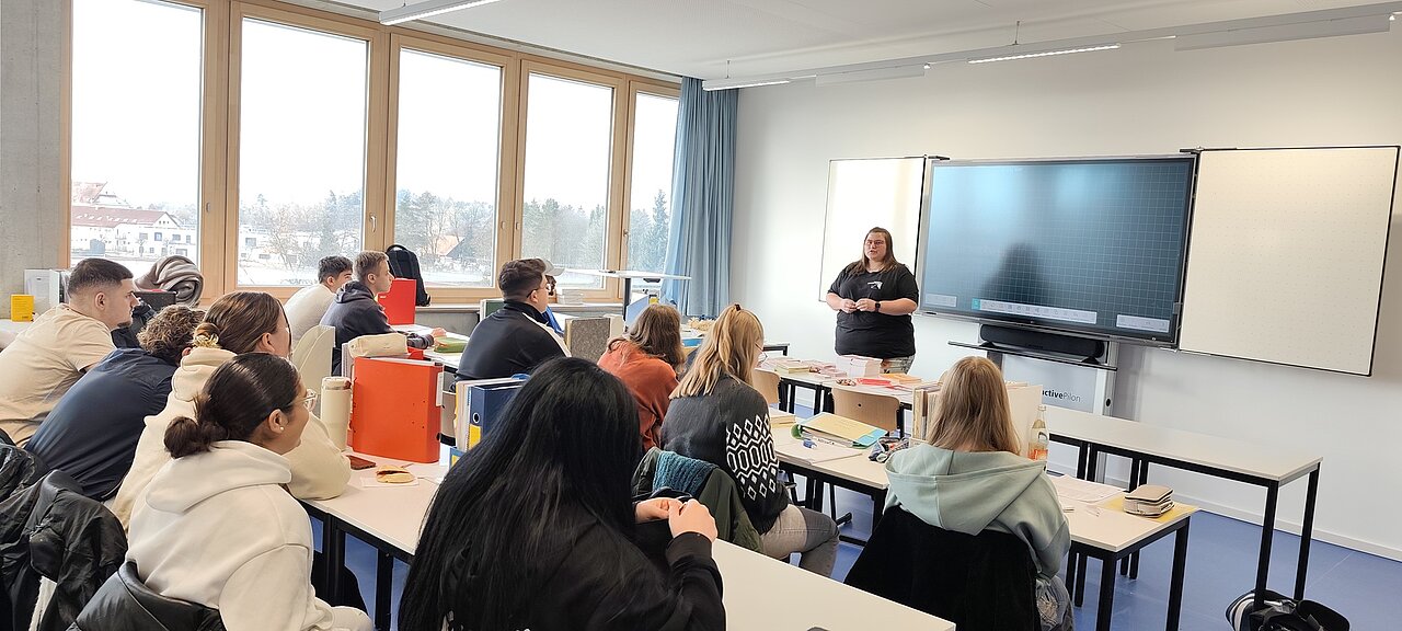 Am Mittwoch, den 19.11.2025, besuchte Frau Schildenberger von der Gewerkschaft NGG (Nahrung-Genuss-Gaststätten) die Klasse H1BA/BV (erstes Lehrjahr BäckerInnen, KonditorInnen und BäckereifachverkäuferInnen) im Unterricht bei Lehrerin Stefanie Vogt.