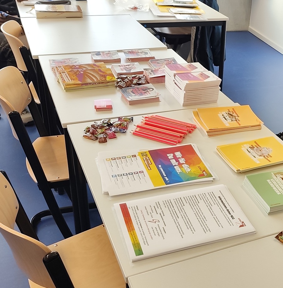 Sie brachte spannende Einblicke in die Arbeit einer Gewerkschaft mit und informierte über zentrale Themen: Rechte und Pflichten in der Ausbildung, Tarifverträge und deren Bedeutung, individuelle Fragen aus dem Ausbildungsalltag.