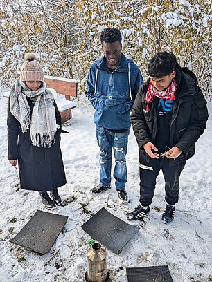 Die Schülerinnen und Schüler sammelten Baumreisig und machten Feuer, um Wasser für den selbst hergestellten Punsch kochen zu können. Zudem durften sie viel Lehrreiches über das Thema Fotosynthese erfahren.